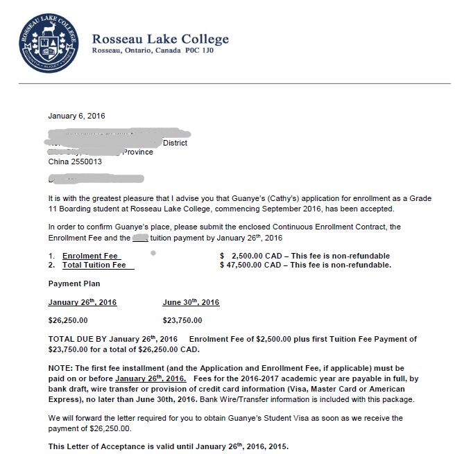 功夫不负有心人,高同学最终收到了加拿大罗丝湖和圣玛格丽特两所著名贵族中学的录取。目前正在申请签证中。学生和学生家长的愿望终于得以实现!