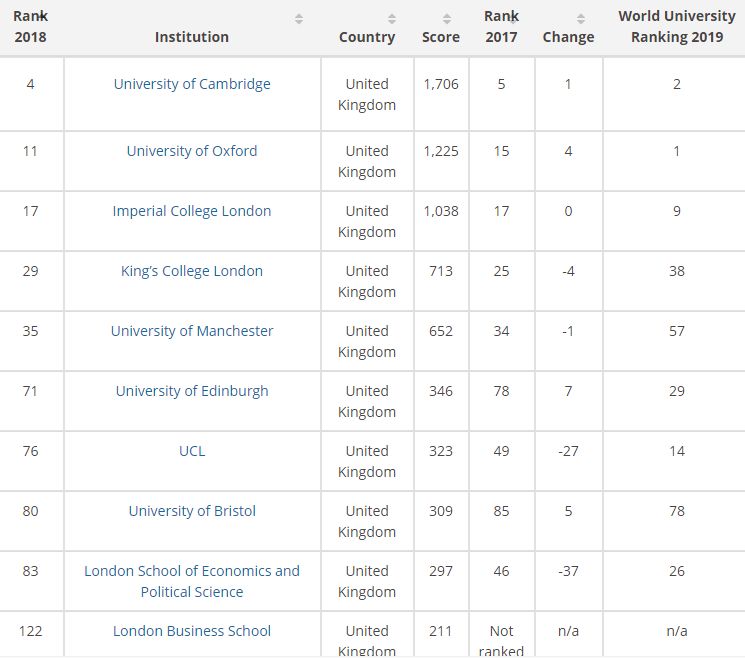 英国时间11月14日,泰晤士高等教育(Times Higher Education)公布了,2018年全球大学毕业生就业能力排名(The Global University Employability Ranking 2018)。