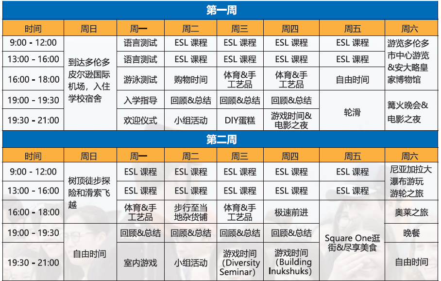 ● 除了ESL课程外,下午及周末会有丰富的体育、手工等课外活动和加拿大著名景点的参观游览;