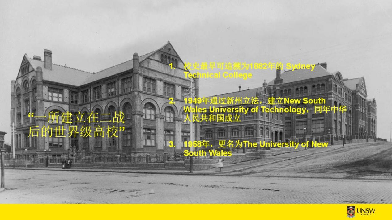 新南威尔士大学成立于1949年,与中华人民共和国同岁。自1949年建校以来,逐渐发展成为世界顶尖的知名学府。在各类世界大学排名中均有耀眼的成绩。