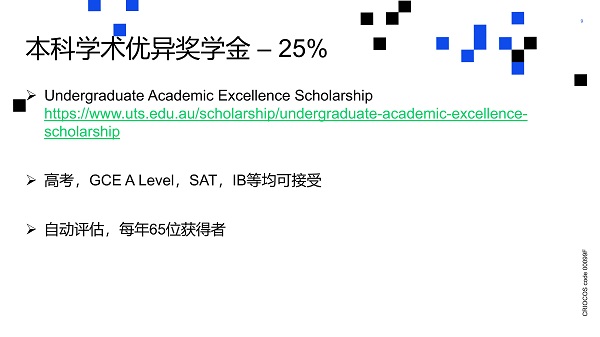 ━ 该奖学金价值为50%学费减免,五大学部各开放两个名额,成绩要求为ATAR 98或GPA 6.8/7以上