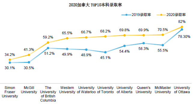在美、英、加、澳新及日本留学中,加拿大的研究生比例是最低的,主要是因为其公立教育体制,研究生整体规模小,但是依然阻挡不住大家申请的热情。从录取的结果来看,海本学生更受青睐,2020年的申请成功率在61%,比2019年的58%有了进一步的提升。