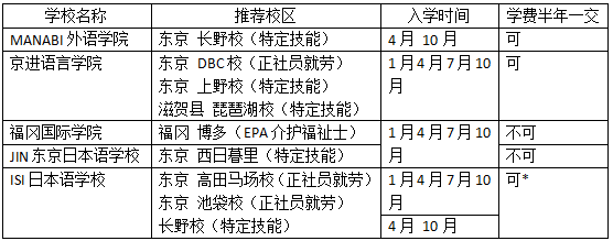 *学校可先垫付学费的25,000日元,来日后需分期还款