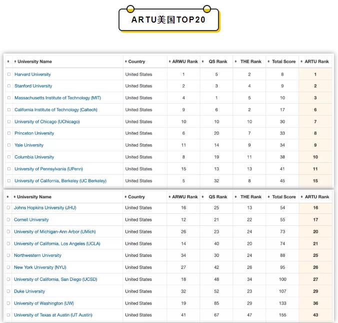 而这份顶尖大学综合排名ARTU综合了世界三大权威榜单——QS世界大学排名、泰晤士高等教育世界大学排名(THE)、软科世界大学学术排名(ARWU);